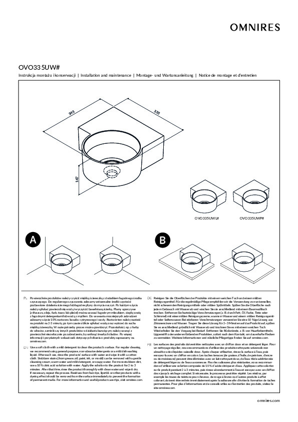 Tvättstället från OMNIRES OVO-kollektionen utmärks av en minimalistisk och uttrycksfull siluett med perfekta proportioner. Designen kombinerar en rund tvättskål med en rektangulär, funktionell avställningsyta – idealisk för montering av blandare samt för förvaring av kosmetika och andra vardagsartiklar. Den harmoniska formen avslutas med en plan kant som framhäver designen, medan den matchande täckbrickan ger ett stilrent och enhetligt intryck.
