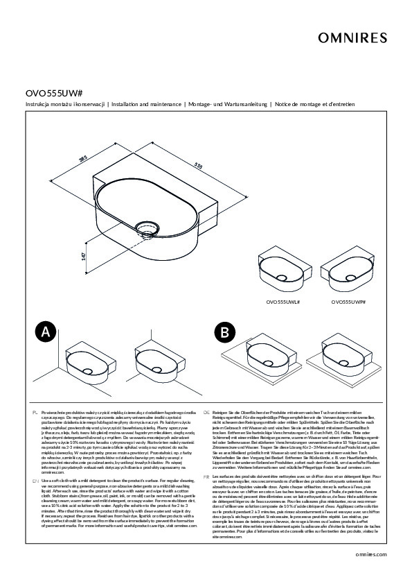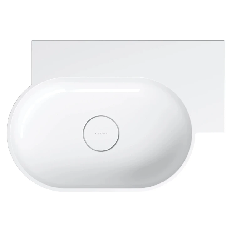 Tvättstället från OMNIRES OVO-kollektionen utmärks av en minimalistisk och uttrycksfull siluett med perfekta proportioner. Designen kombinerar en rund tvättskål med en rektangulär, funktionell avställningsyta – idealisk för montering av blandare samt för förvaring av kosmetika och andra vardagsartiklar. Den harmoniska formen avslutas med en plan kant som framhäver designen, medan den matchande täckbrickan ger ett stilrent och enhetligt intryck.