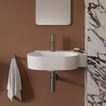 Den genomarbetade formen möjliggör flexibel montering – på vägg, i hörn eller på bänkskiva – och de kompakta måtten gör tvättstället perfekt även för mindre utrymmen.