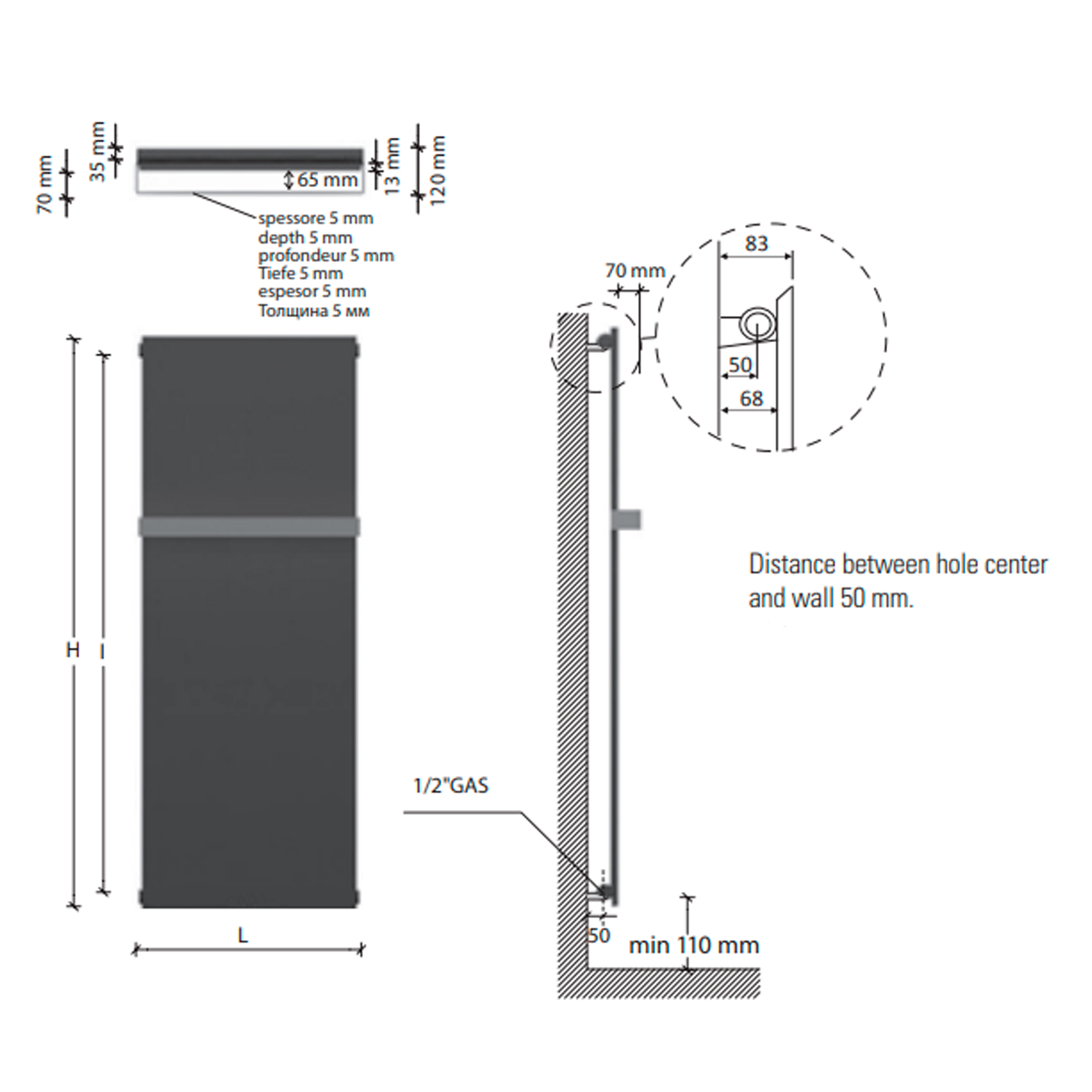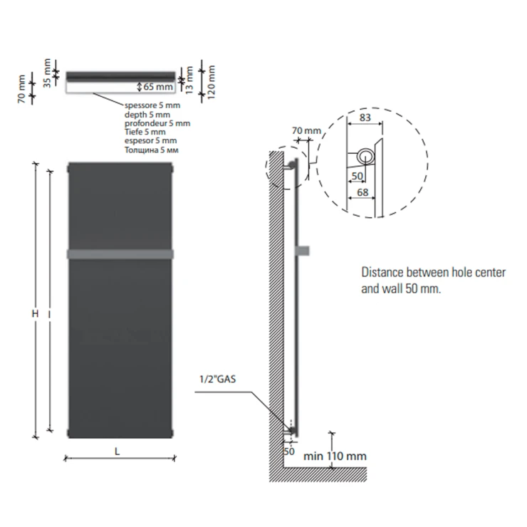 • Avstånd mellan hålcentrum och vägg: 50 mm