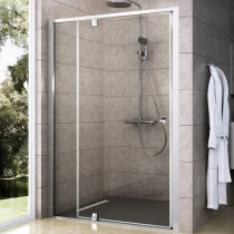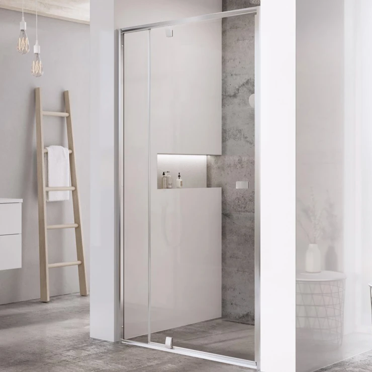 Produkten består av en plan fast panel och en plan roterande panel som fungerar som dörr. Genom att rotera produkten 180° kan du välja dörröppning åt vänster eller höger. Produkten är avsedd för montering i ett kaklat hörn av badrummet.