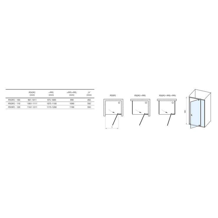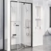Produkten består av en plan fast panel och en plan roterande panel som fungerar som dörr. Genom att rotera produkten 180° kan du välja dörröppning åt vänster eller höger. Produkten är avsedd för montering i ett kaklat hörn av badrummet.