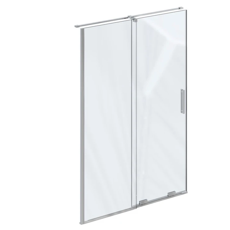 Roll tvådelad duschdörr med klara glaspaneler skyddade med Ravak AntiCalc®-behandling som motverkar kalkavlagringar. Skjutdörrssystem. Konstruktionen är vändbar för vänster- eller högerinstallation.
