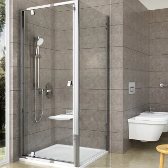 Duschhörnan består av två separata produkter: en duschdörr och en fast panel. Genom att rotera produkten 180° kan du välja dörröppning åt vänster eller höger. Produkten är avsedd för montering i ett kaklat hörn av badrummet, på Ravak duschkar eller direkt på golvet tillsammans med en inbyggd duschkanal eller punktbrunn.