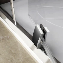 Duschhörnan består av två separata produkter: en duschdörr och en fast panel. Genom att rotera produkten 180° kan du välja dörröppning åt vänster eller höger. Produkten är avsedd för montering i ett kaklat hörn av badrummet direkt på golvet tillsammans med en inbyggd duschkanal eller punktbrunn.