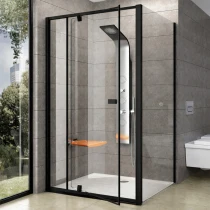 Brusehjørnet består af to separate produkter: en brusedør og et fast panel. Ved at dreje produktet 180° kan du vælge døråbning til venstre eller højre. Produktet er beregnet til montering i et flisebelagt hjørne af badeværelset direkte på gulvet sammen med en indbygget brusekanal eller punktafløb.