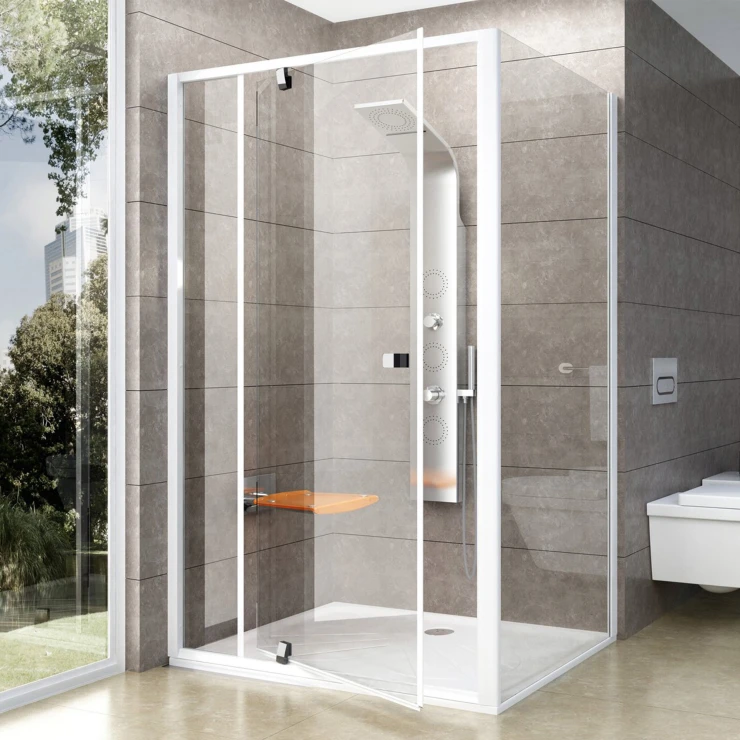 Duschhörnan består av två separata produkter: en duschdörr och en fast panel. Genom att rotera produkten 180° kan du välja dörröppning åt vänster eller höger. Produkten är avsedd för montering i ett kaklat hörn av badrummet, på Ravak duschkar eller direkt på golvet tillsammans med en inbyggd duschkanal eller punktbrunn.
