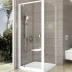 Duschhörnan består av två separata produkter: en duschdörr och en fast panel . Genom att rotera produkten 180° kan du välja dörröppning åt vänster eller höger. Produkten är avsedd för montering i ett kaklat hörn av badrummet direkt på golvet tillsammans med en inbyggd duschkanal eller punktbrunn.