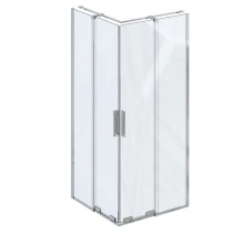 Roll fyrdelad hörndusch i blank kromfinish, med klara glaspaneler skyddade med Ravak AntiCalc®-behandling som motverkar kalkavlagringar. Skjutdörrssystem.
