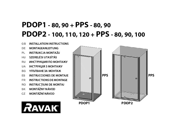 Produkten består av en plan fast panel och en plan roterande panel som fungerar som dörr. Genom att rotera produkten 180° kan du välja dörröppning åt vänster eller höger. Produkten är avsedd för montering i ett kaklat hörn av badrummet (helst i en nisch bildad av väggar eller i kombination med en PPS fast panel), på Ravak duschkar eller direkt på golvet tillsammans med en inbyggd duschkanal eller punktbrunn. Genom att kombinera med två PPS fasta paneler skapar du en U-formad duschhörna.