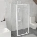 Pivot tresidig duschhörna med ram i vit finish samt kromade handtag och gångjärn. Panelerna är tillverkade av klart glas med skyddande Ravak AntiCalc®-behandling. Pivot-öppningssystem. Produkten består av en duschdörr och två fasta paneler. Reversibel design för installation med vänster- eller högeröppning.