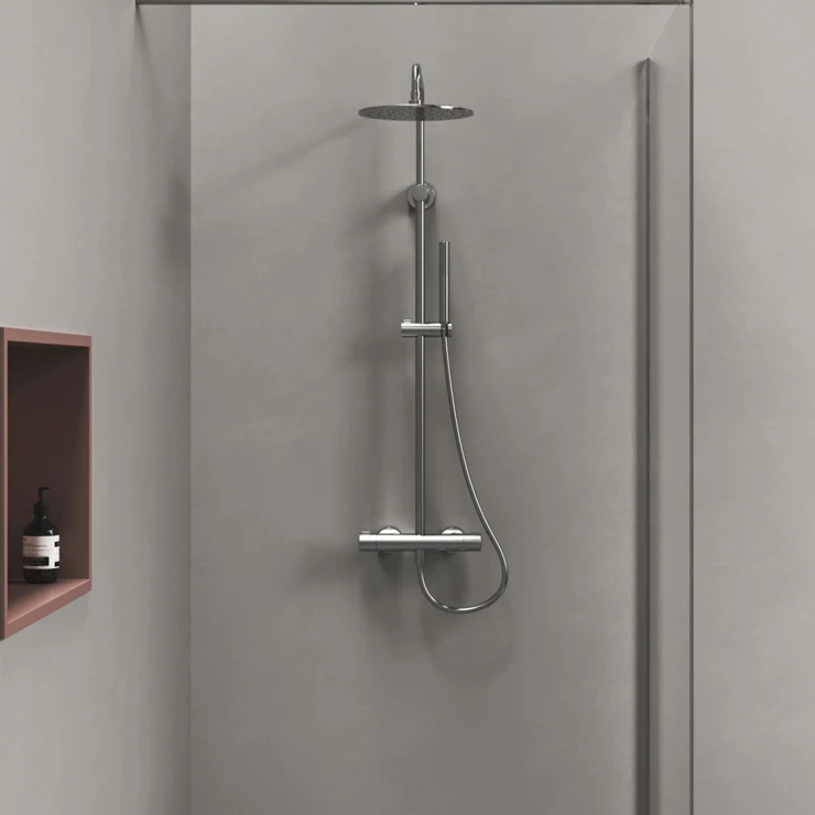 Spring termostatisk duschpelare, justerbar, med duschset.