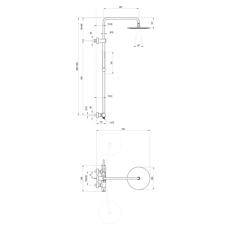Duschdesign: diameter på takdusch – 25 cm; handdusch – 1 strålläge; takduschen kan även vridas åt sidorna. Air-funktionen gör att luft blandas in i vattnet, vilket ger en behagligare duschupplevelse och samtidigt minskar vattenförbrukningen. Hålen och kanalerna under duschlocket hjälper till att avlägsna kvarvarande vatten; efter att vattnet stängts av finns inget restvatten kvar i duschen, vilket minskar risken för skador.
