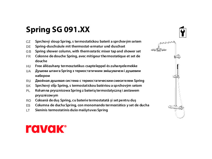 För en komplett badrumslösning och ett enhetligt uttryck rekommenderar vi att kombinera med andra blandare i Spring-serien samt andra RAVAK-tillbehör. Vi rekommenderar att då och då vrida temperaturreglaget till maxlägen (beroende på vattnets hårdhet) för att motverka kalkavlagringar.