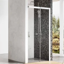 Matrix tvådelad duschdörr i vit finish med paneler av klart glas, skyddade med Ravak AntiCalc®-behandling. Skjutdörrssystem.