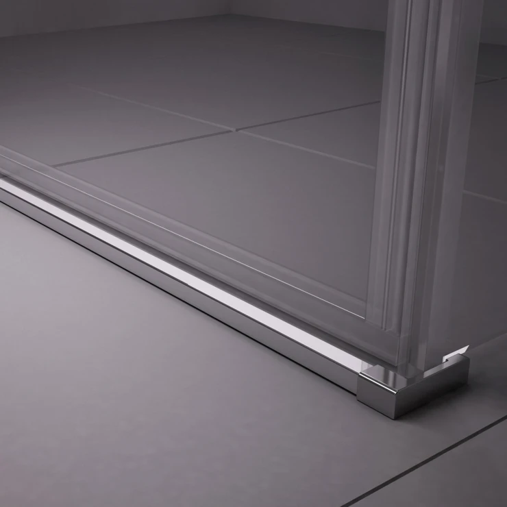 Produkten består av två paneler, varav en fungerar som skjutdörr. Den är avsedd för montering i ett kaklat badrum (i en nisch bildad av väggar), direkt på golvet tillsammans med en inbyggd duschkanal eller punktbrunn.