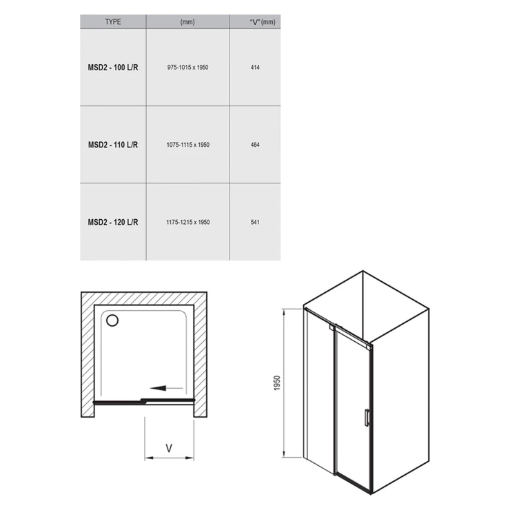 Produkten består av två paneler, varav en fungerar som skjutdörr. Den är avsedd för montering i ett kaklat badrum (i en nisch bildad av väggar), direkt på golvet tillsammans med en inbyggd duschkanal eller punktbrunn.