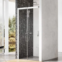 Matrix tvådelad duschdörr i vit finish med paneler av klart glas, skyddade med Ravak AntiCalc®-behandling. Skjutdörrssystem.
