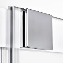Matrix tvådelad duschdörr i vit finish med paneler av klart glas, skyddade med Ravak AntiCalc®-behandling. Skjutdörrssystem.