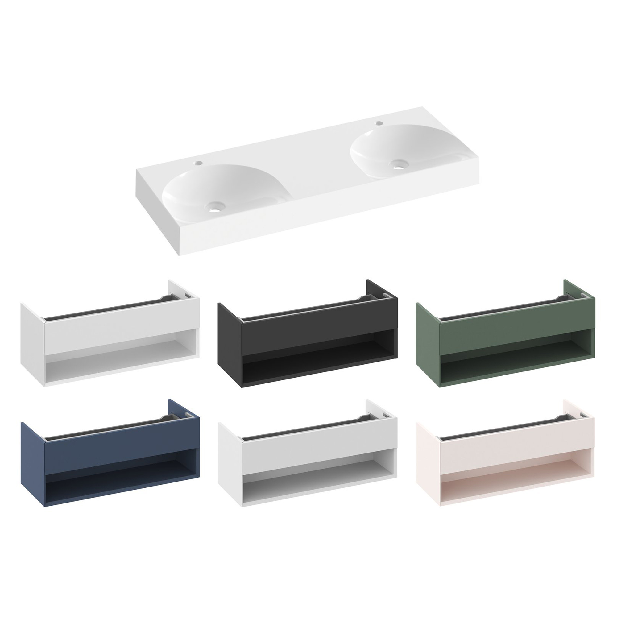 Møbelhåndvask i støbemarmor Lite til vægmontering eller indbygning i et væghængt underskab, uden overløb. Udførelse i hvid. Med hul til armatur.
