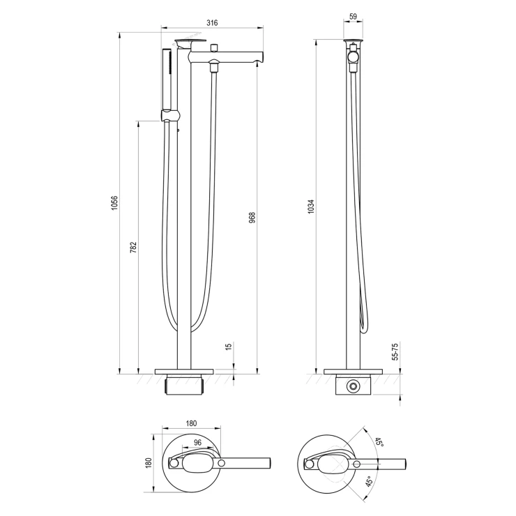 Spring golvmonterad badkarsblandare med duschset, avsedd för R-Box.