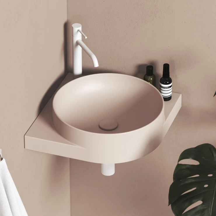 Ravak Håndvask Alabaster Rosa Yard 45 cm med Bundventil og Rustfrit Stål Beslag