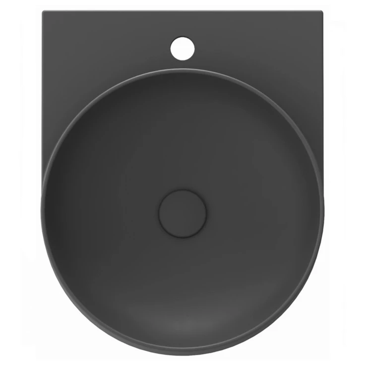 Yard tyndvægget keramisk vask med hul til dækmonteret armatur, Yard-konsol, uden overløb, Flat fast bundventil. |