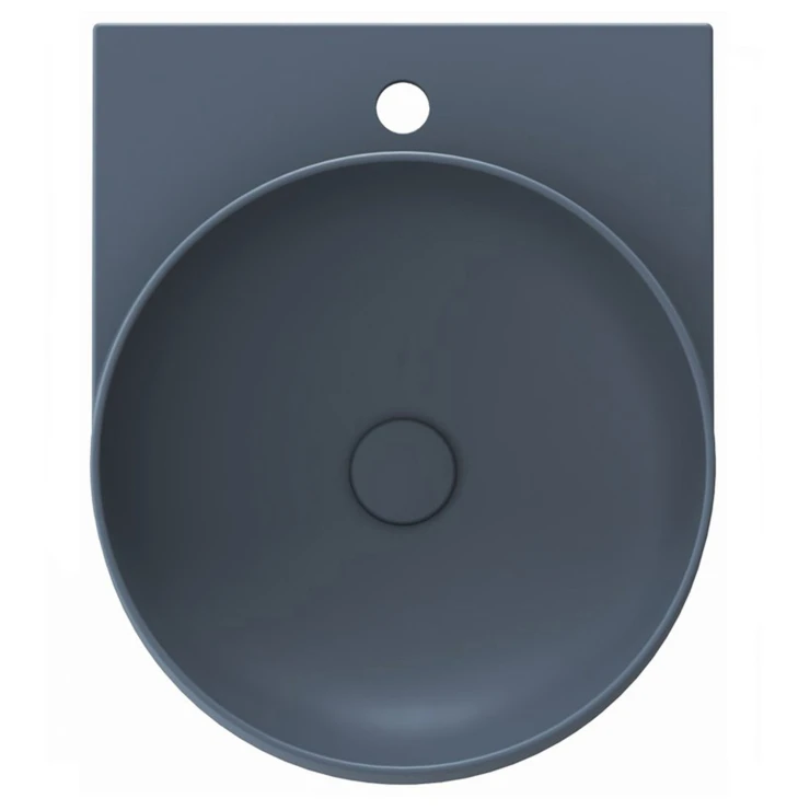 Yard tyndvægget keramisk vask med hul til dækmonteret armatur, Yard-konsol, uden overløb, Flat fast bundventil. |