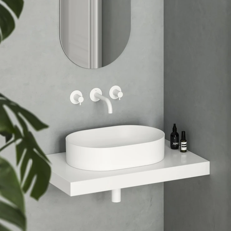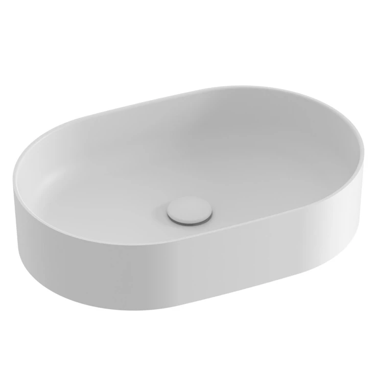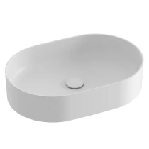Ceramic Slim tunnväggigt keramiskt tvättställ för montering på bänkskiva eller tvättställsskåp, utan bräddavlopp. Matt vit finish.