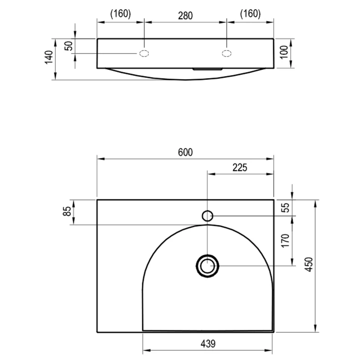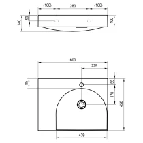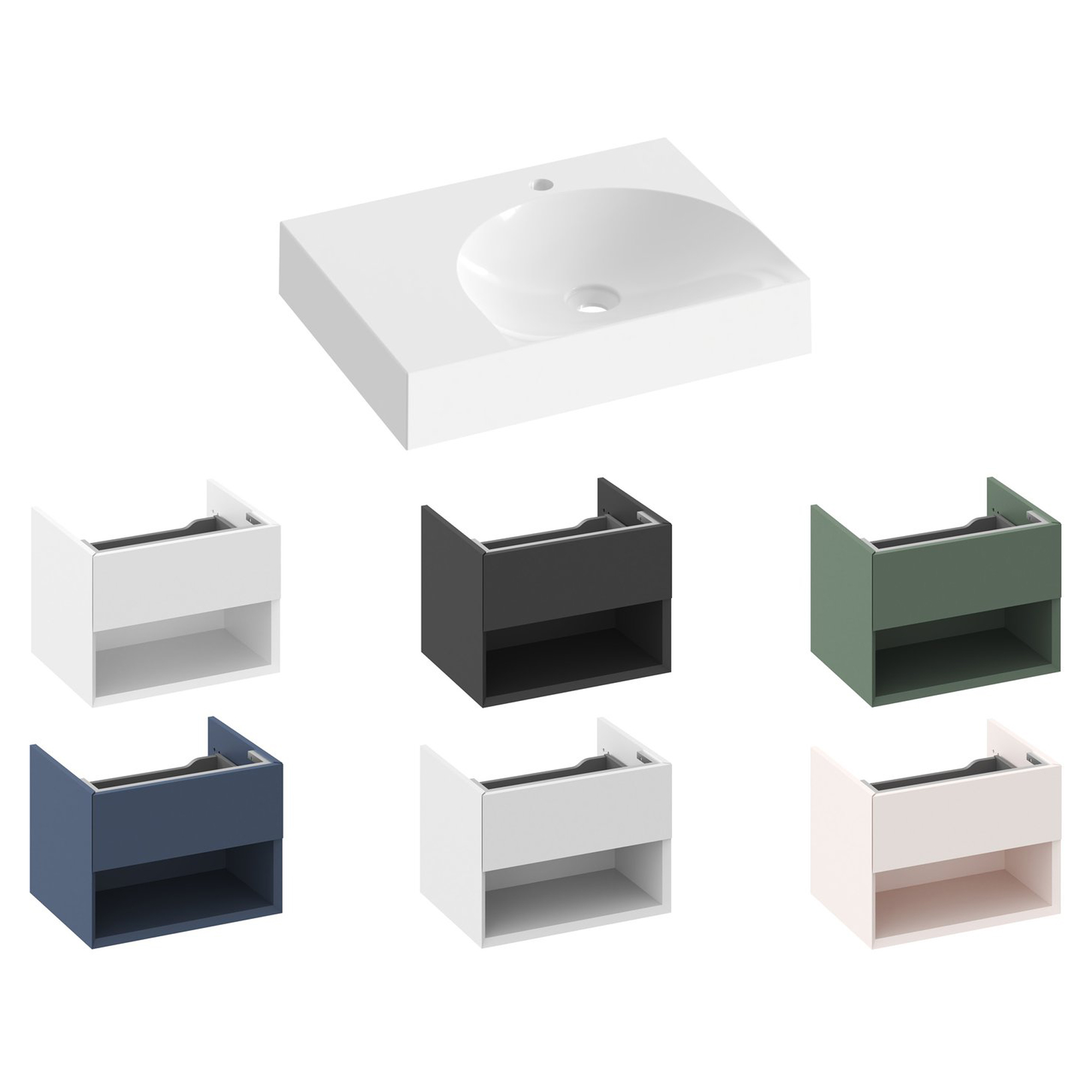 Møbelhåndvask i støbemarmor Lite til vægmontering eller indbygning i et væghængt underskab, uden overløb. Udførelse i hvid. Med hul til blandingsbatteri.