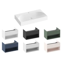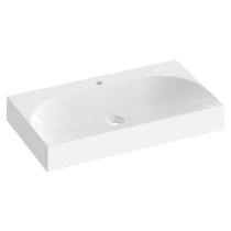 Møbelhåndvask i støbemarmor Lite til vægmontering eller indbygning i et væghængt underskab, uden overløb. Udførelse i hvid. Med hul til blandingsbatteri.