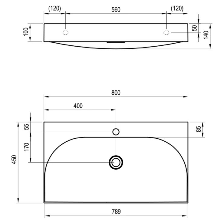 Møbelhåndvask i støbemarmor Lite til vægmontering eller indbygning i et væghængt underskab, uden overløb. Udførelse i hvid. Med hul til blandingsbatteri.