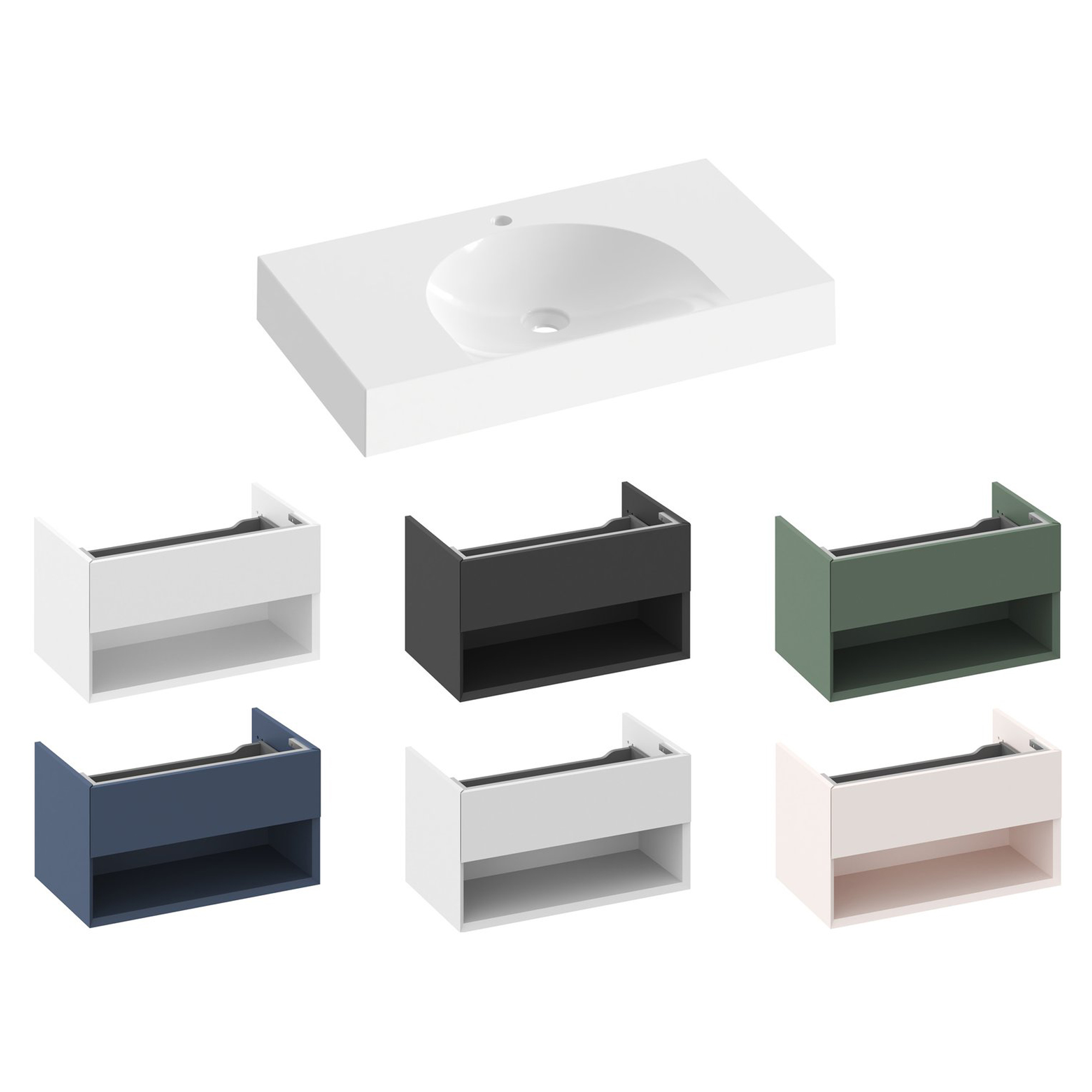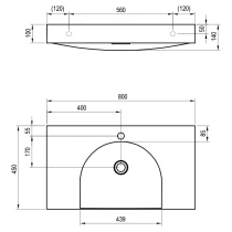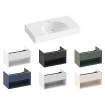 Møbelhåndvask i støbemarmor Lite til vægmontering eller indbygning i et væghængt underskab, uden overløb. Udførelse i hvid. Med hul til blandingsbatteri.