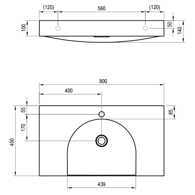 Møbelhåndvask i støbemarmor Lite til vægmontering eller indbygning i et væghængt underskab, uden overløb. Udførelse i hvid. Med hul til blandingsbatteri.
