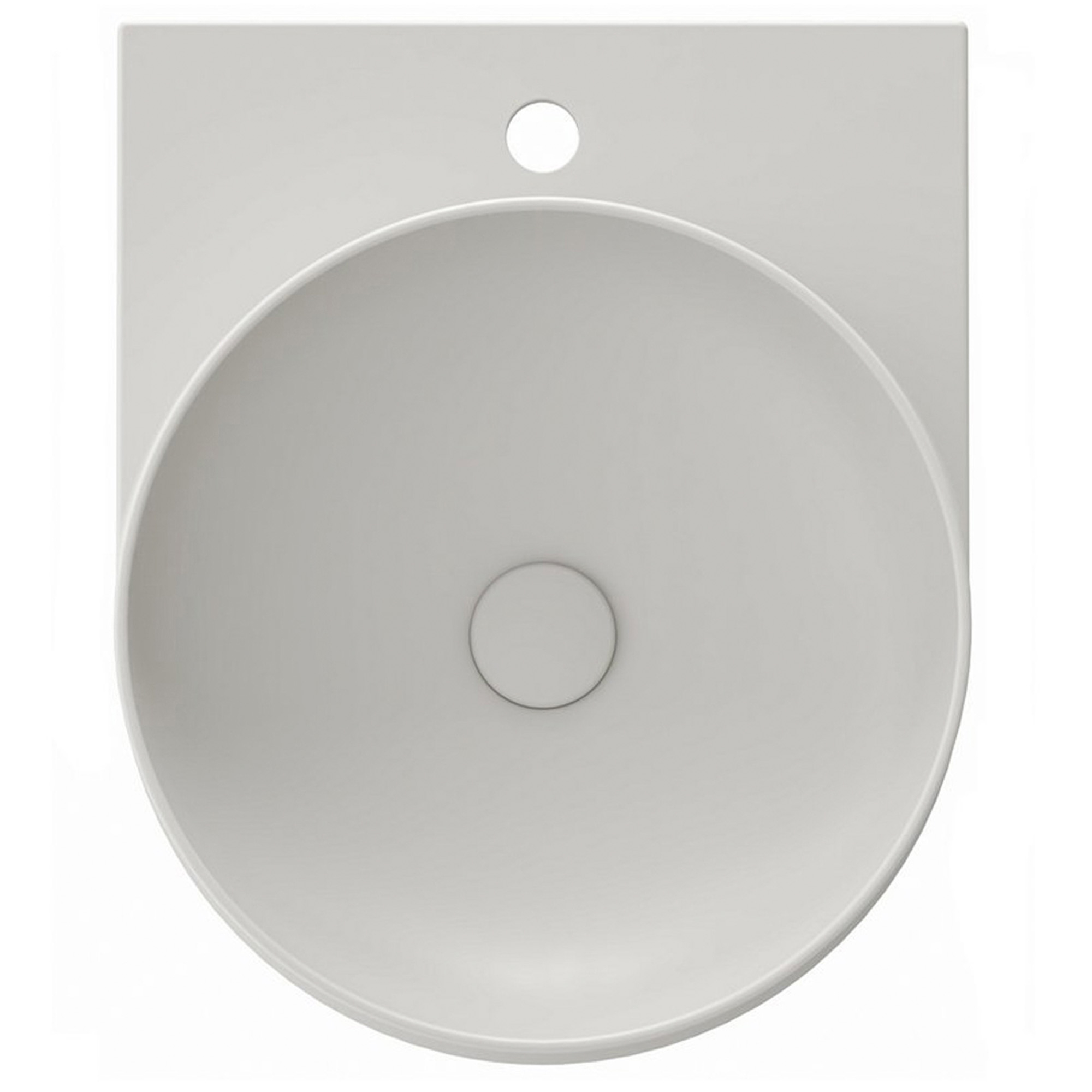 Yard tunnväggigt keramiskt tvättställ med hål för däckmonterad blandare, Yard-konsol, utan bräddavlopp, Flat fast bottenventil.