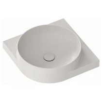 Stabilt stöd, inget möbelbehov: Yard monteras direkt på väggen med hjälp av en stålkonsol, vilket eliminerar behovet av extra möbler. Konsolen följer tvättställets form och förstärker helhetsintrycket.