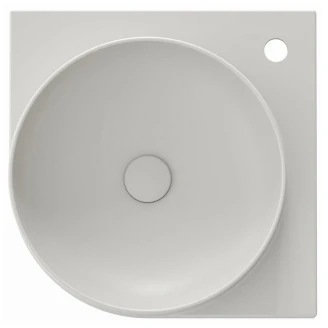 Yard tunnväggigt keramiskt tvättställ med hål för däckmonterad blandare, Yard-konsol, utan bräddavlopp, Flat fast bottenventil.