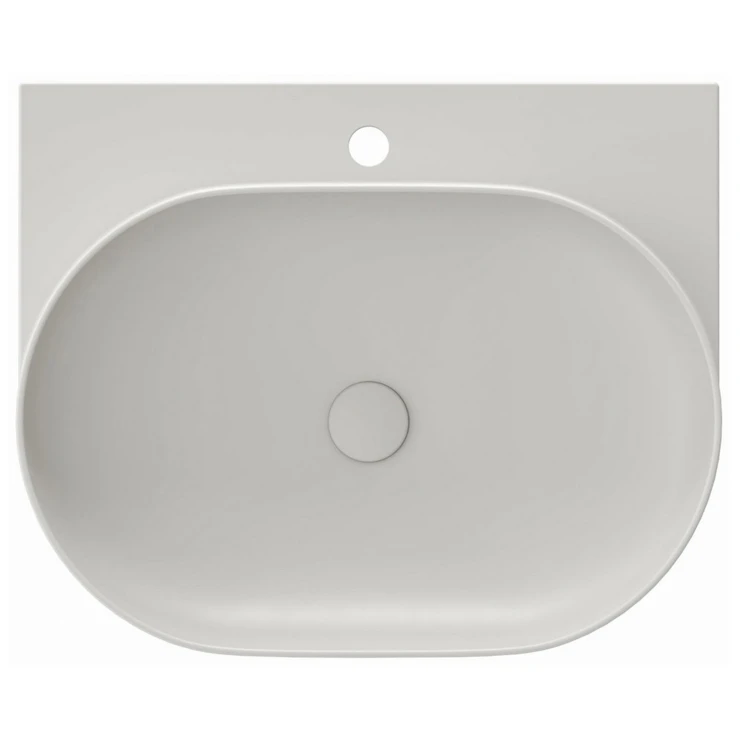 Yard tyndvægget keramisk vask med hul til dækmonteret armatur, Yard-konsol, uden overløb, Flat fast bundventil. |
