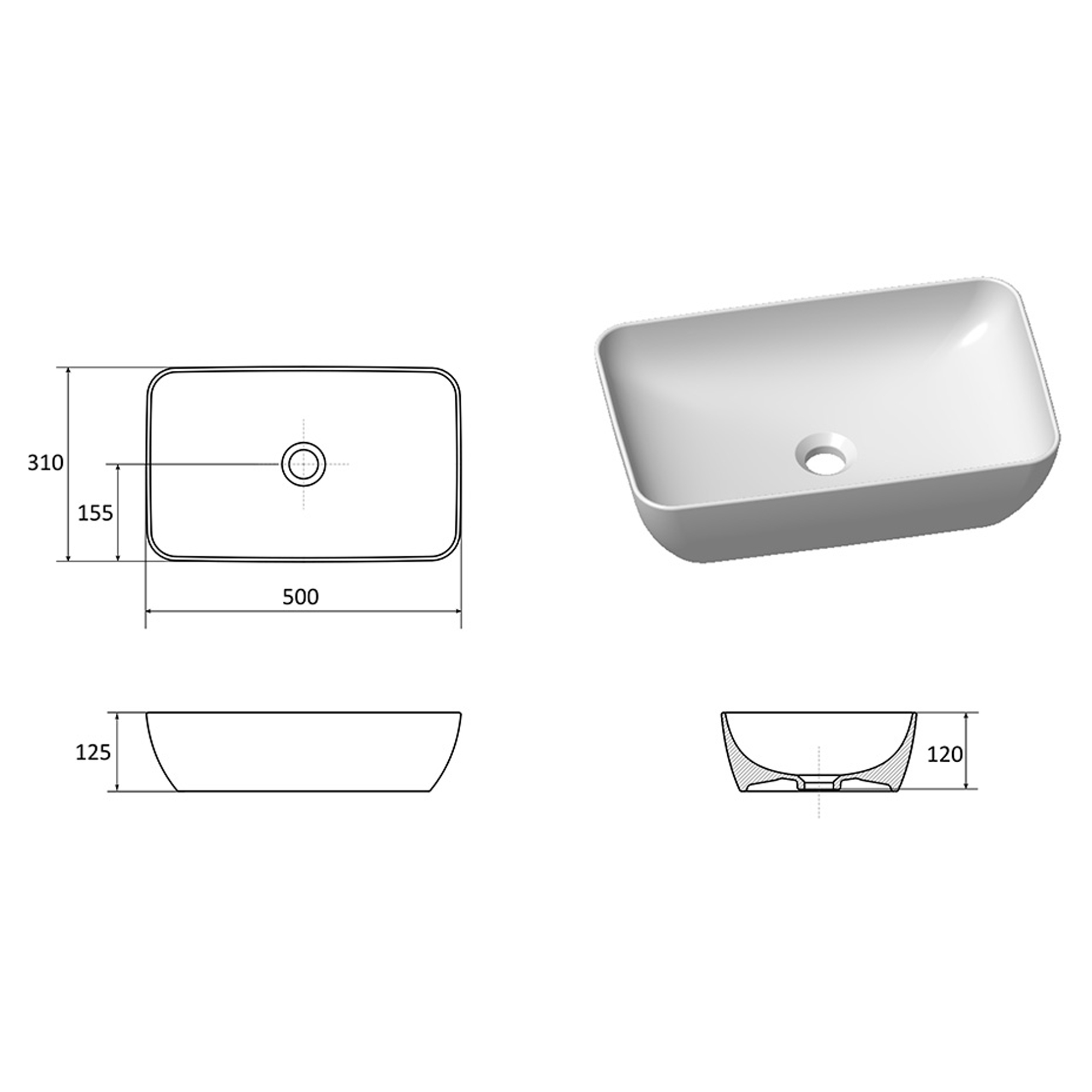 - Mål: 500 × 310 × 125 mm