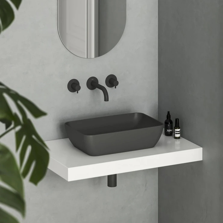 Uni Slim tyndvægget håndvask i keramik til montering på bordplade eller vaskeskab, uden overløb.