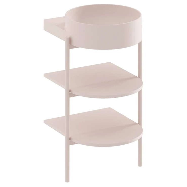 Den öppna Yard-möbeln består av en stabil metallram och två hyllplan. Den fristående metallstrukturen med hyllor CS Yard 40 är specifikt designad för Yard 40-tvättstället. Strukturen är utrustad med ett hål för vattenlåset samt stabiliserande fötter. Hyllorna följer perfekt tvättställets form och erbjuder gott om förvaringsutrymme. Produkten måste säkras mot väggen. Levereras omonterad.