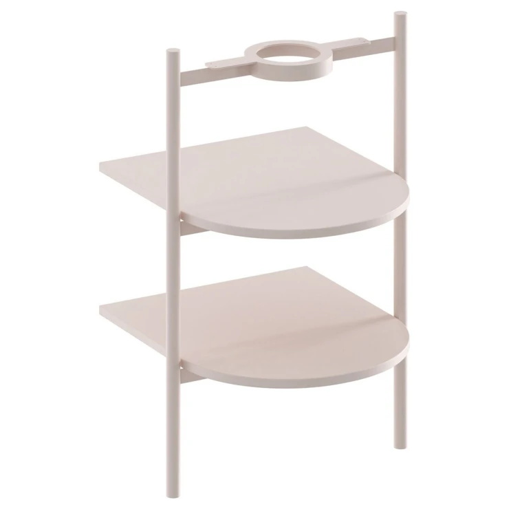 Takket være de velafbalancerede proportioner føles hyldesystemet på stålben ikke klodset og giver samtidig masser af opbevaring til badeværelsesartikler. |
