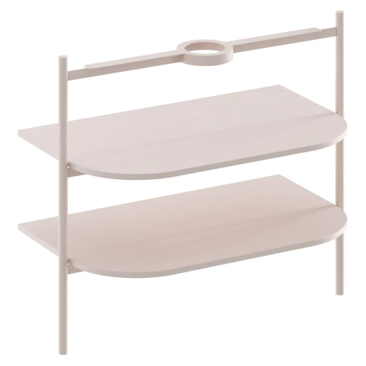 Takket være de velafbalancerede proportioner føles hyldesystemet på stålben ikke klodset og giver samtidig masser af opbevaring til badeværelsesartikler. |