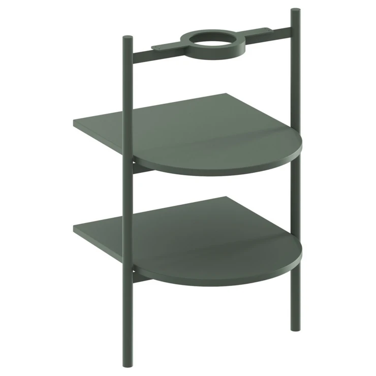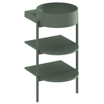 Takket være de velafbalancerede proportioner føles hyldesystemet på stålben ikke klodset og giver samtidig masser af opbevaring til badeværelsesartikler. |
