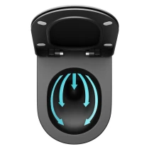 Den extra tunna Uni Chrome Flat-toalettsitsen i svart är tillverkad av slitstark duroplast, lackerad i matt svart. Sitsen är utrustad med SoftClose-funktion för långsam och tyst stängning. Den antibakteriella sammansättningen minskar bakterietillväxt tack vare inbyggda silverföreningar. Sitsen är avsedd för den svarta Uni Chrome RimOff-toaletten.