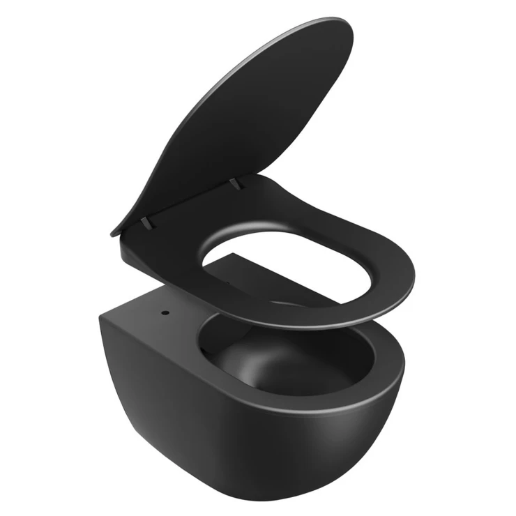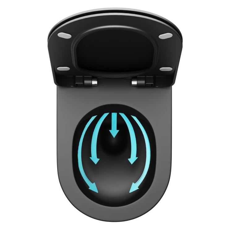 Uni Chrome RimOff väggmonterad toalett i svart finish.