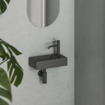 Veda Slim är ett stilrent och platsbesparande väggmonterat tvättställ i keramik med minimalistisk design – perfekt för mindre badrum och gästtoaletter. Tvättstället är tillverkat i högkvalitativ, hållbar keramik och finns i flera färger och ytbehandlingar för att matcha ditt badrumskoncept.