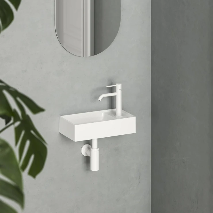 Tvättstället är roterbart och kan användas som vänster- eller höger-variant, beroende på var blandaren placeras.