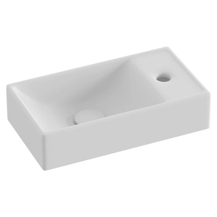 Detta tvättställ har kompakta mått (ca 40,8 × 22,2 cm) och är utformat för väggmontering. Eftersom modellen saknar bräddavlopp, krävs en fast bottenventil tillsammans med en blandare för däckmontering.