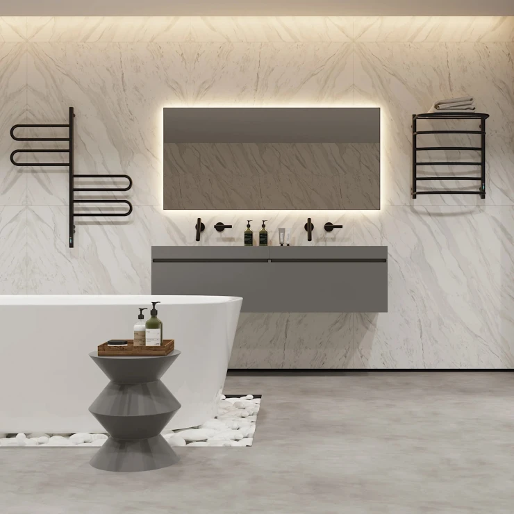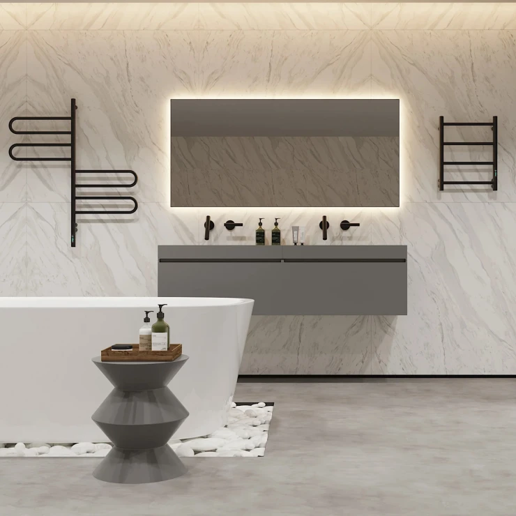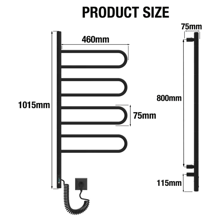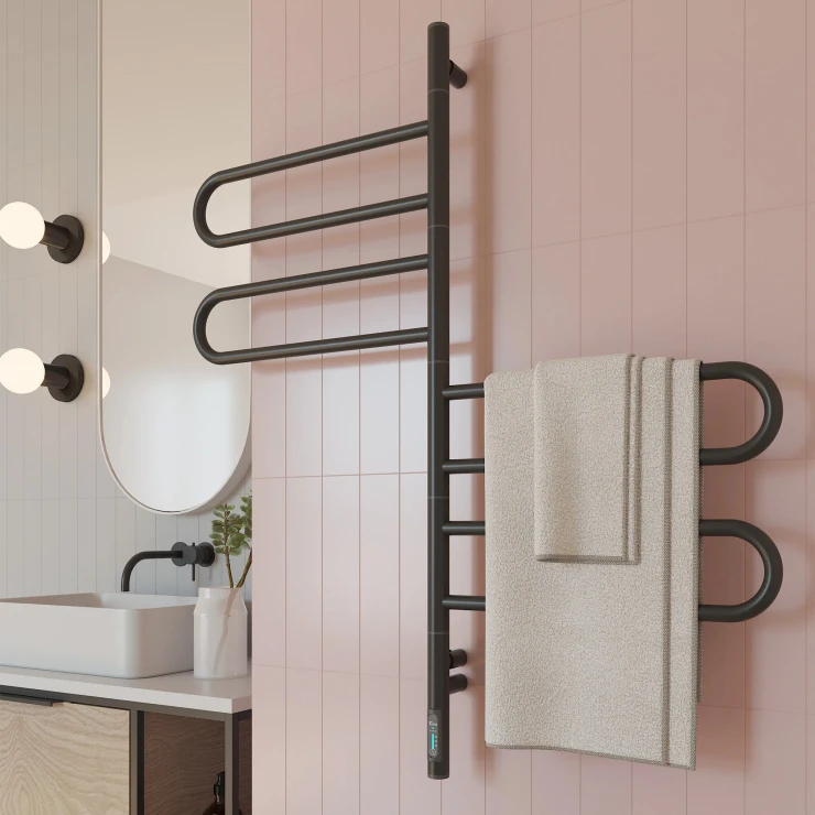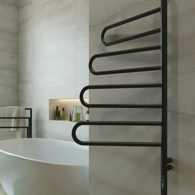 I tråd med globale trends inden for badeværelsesdesign præsenterer vi denne elektriske håndklædetørrer i mat sort udførelse. Et perfekt designvalg for kunder, der værdsætter industrielle farvetoner, minimalistisk æstetik og rene metalformer.